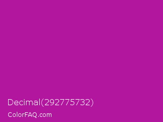 Decimal 292775732 Color is a normal magenta color and the nearest color is Violet Eggplant #991199. Hex code #b3169e and RGB value is rgb(179,22,158). In RGB color space, this color is composed of 70% red, 9% green, 62% blue, In CMYK color space, this color is composed of 0% cyan, 88% magenta, 12% yellow , 30% black , In HSL color space, this color has a hue angle of 308° , 78% saturation and 39% lightness.