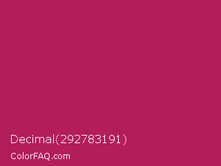 Decimal 292783191 Color is a normal rose color and the nearest color is Rose Red #c21e56. Hex code #b31d59 and RGB value is rgb(179,29,89). In RGB color space, this color is composed of 70% red, 11% green, 35% blue, In CMYK color space, this color is composed of 0% cyan, 84% magenta, 50% yellow , 30% black , In HSL color space, this color has a hue angle of 336° , 72% saturation and 41% lightness.