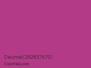 Decimal 292837670 Color is a normal magenta color and the nearest color is Fandango #b53389. Hex code #b33a86 and RGB value is rgb(179,58,134). In RGB color space, this color is composed of 70% red, 23% green, 53% blue, In CMYK color space, this color is composed of 0% cyan, 68% magenta, 25% yellow , 30% black , In HSL color space, this color has a hue angle of 322° , 51% saturation and 46% lightness.