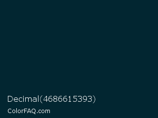 Decimal 4686615393 Color is a very dark blue color and the nearest color is Daintree #012731. Hex code #022631 and RGB value is rgb(2,38,49). In RGB color space, this color is composed of 1% red, 15% green, 19% blue, In CMYK color space, this color is composed of 96% cyan, 22% magenta, 0% yellow , 81% black , In HSL color space, this color has a hue angle of 194° , 92% saturation and 10% lightness.