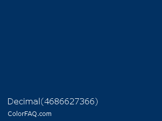 Decimal 4686627366 Color is a very dark blue color and the nearest color is Cool Black #002e63. Hex code #023162 and RGB value is rgb(2,49,98). In RGB color space, this color is composed of 1% red, 19% green, 38% blue, In CMYK color space, this color is composed of 98% cyan, 50% magenta, 0% yellow , 62% black , In HSL color space, this color has a hue angle of 211° , 96% saturation and 20% lightness.