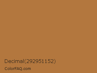 Decimal 292951152 Color is a normal orange color and the nearest color is Copper #b87333. Hex code #b3773e and RGB value is rgb(179,119,62). In RGB color space, this color is composed of 70% red, 47% green, 24% blue, In CMYK color space, this color is composed of 0% cyan, 34% magenta, 65% yellow , 30% black , In HSL color space, this color has a hue angle of 29° , 49% saturation and 47% lightness.