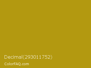 Decimal 293011752 Color is a normal yellow color and the nearest color is Sahara #b7a214. Hex code #b39910 and RGB value is rgb(179,153,16). In RGB color space, this color is composed of 70% red, 60% green, 6% blue, In CMYK color space, this color is composed of 0% cyan, 15% magenta, 91% yellow , 30% black , In HSL color space, this color has a hue angle of 50° , 84% saturation and 38% lightness.