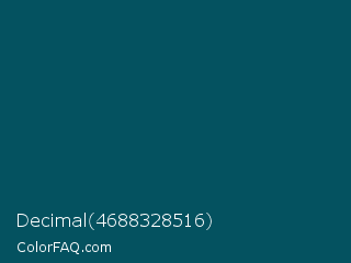 Decimal 4688328516 Color is a very dark cyan color and the nearest color is Deep Sea Green #095859. Hex code #045260 and RGB value is rgb(4,82,96). In RGB color space, this color is composed of 2% red, 32% green, 38% blue, In CMYK color space, this color is composed of 96% cyan, 15% magenta, 0% yellow , 62% black , In HSL color space, this color has a hue angle of 189° , 92% saturation and 20% lightness.