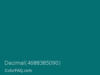 Decimal 4688385090 Color is a dark cyan color and the nearest color is Skobeloff #007474. Hex code #047072 and RGB value is rgb(4,112,114). In RGB color space, this color is composed of 2% red, 44% green, 45% blue, In CMYK color space, this color is composed of 96% cyan, 2% magenta, 0% yellow , 55% black , In HSL color space, this color has a hue angle of 181° , 93% saturation and 23% lightness.