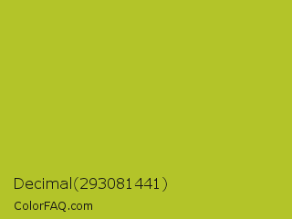 Decimal 293081441 Color is a normal yellow color and the nearest color is Key Lime Pie #bfc921. Hex code #b3c429 and RGB value is rgb(179,196,41). In RGB color space, this color is composed of 70% red, 77% green, 16% blue, In CMYK color space, this color is composed of 9% cyan, 0% magenta, 79% yellow , 23% black , In HSL color space, this color has a hue angle of 67° , 65% saturation and 46% lightness.