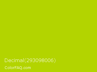 Decimal 293098006 Color is a normal yellow color and the nearest color is Rio Grande #bbd009. Hex code #b3d400 and RGB value is rgb(179,212,0). In RGB color space, this color is composed of 70% red, 83% green, 0% blue, In CMYK color space, this color is composed of 16% cyan, 0% magenta, 100% yellow , 17% black , In HSL color space, this color has a hue angle of 69° , 100% saturation and 42% lightness.