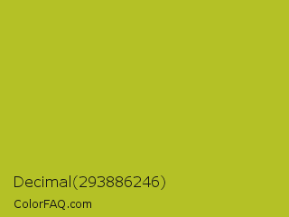 Decimal 293886246 Color is a normal yellow color and the nearest color is Acid Green #b0bf1a. Hex code #b4c126 and RGB value is rgb(180,193,38). In RGB color space, this color is composed of 71% red, 76% green, 15% blue, In CMYK color space, this color is composed of 7% cyan, 0% magenta, 80% yellow , 24% black , In HSL color space, this color has a hue angle of 65° , 67% saturation and 45% lightness.