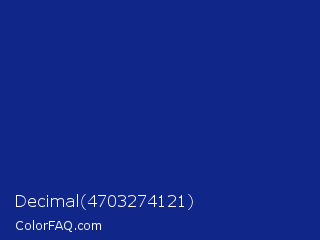 Decimal 4703274121 Color is a dark blue color and the nearest color is Indigo Dye #091f92. Hex code #112689 and RGB value is rgb(17,38,137). In RGB color space, this color is composed of 7% red, 15% green, 54% blue, In CMYK color space, this color is composed of 88% cyan, 72% magenta, 0% yellow , 46% black , In HSL color space, this color has a hue angle of 230° , 78% saturation and 30% lightness.