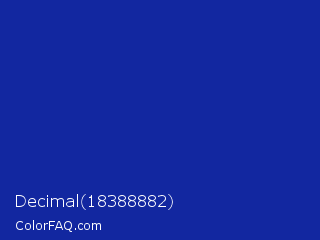 Decimal 18388882 Color is a normal blue color and the nearest color is Torea Bay #0f2d9e. Hex code #1227a0 and RGB value is rgb(18,39,160). In RGB color space, this color is composed of 7% red, 15% green, 63% blue, In CMYK color space, this color is composed of 89% cyan, 76% magenta, 0% yellow , 37% black , In HSL color space, this color has a hue angle of 231° , 80% saturation and 35% lightness.