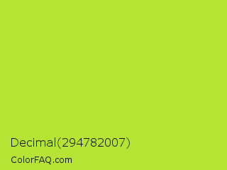 Decimal 294782007 Color is a normal lime color and the nearest color is Green Lizard #a7f432. Hex code #b5e435 and RGB value is rgb(181,228,53). In RGB color space, this color is composed of 71% red, 89% green, 21% blue, In CMYK color space, this color is composed of 21% cyan, 0% magenta, 77% yellow , 11% black , In HSL color space, this color has a hue angle of 76° , 76% saturation and 55% lightness.