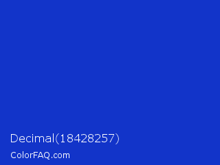 Decimal 18428257 Color is a normal blue color and the nearest color is Persian Blue #1c39bb. Hex code #1234c9 and RGB value is rgb(18,52,201). In RGB color space, this color is composed of 7% red, 20% green, 79% blue, In CMYK color space, this color is composed of 91% cyan, 74% magenta, 0% yellow , 21% black , In HSL color space, this color has a hue angle of 229° , 84% saturation and 43% lightness.