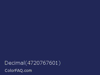 Decimal 4720767601 Color is a dark blue color and the nearest color is Space Cadet #1d2951. Hex code #212757 and RGB value is rgb(33,39,87). In RGB color space, this color is composed of 13% red, 15% green, 34% blue, In CMYK color space, this color is composed of 62% cyan, 55% magenta, 0% yellow , 66% black , In HSL color space, this color has a hue angle of 233° , 45% saturation and 24% lightness.