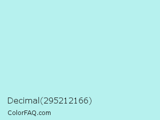 Decimal 295212166 Color is a very light cyan color and the nearest color is Pale Turquoise #afeeee. Hex code #b6f1ee and RGB value is rgb(182,241,238). In RGB color space, this color is composed of 71% red, 95% green, 93% blue, In CMYK color space, this color is composed of 24% cyan, 0% magenta, 1% yellow , 5% black , In HSL color space, this color has a hue angle of 177° , 68% saturation and 83% lightness.