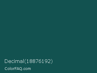 Decimal 18876192 Color is a very dark cyan color and the nearest color is Eden #105852. Hex code #125250 and RGB value is rgb(18,82,80). In RGB color space, this color is composed of 7% red, 32% green, 31% blue, In CMYK color space, this color is composed of 78% cyan, 0% magenta, 2% yellow , 68% black , In HSL color space, this color has a hue angle of 178° , 64% saturation and 20% lightness.