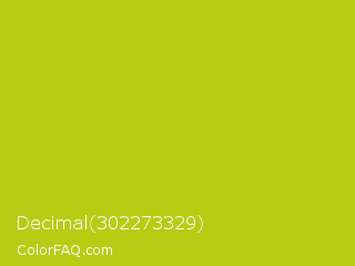 Decimal 302273329 Color is a normal yellow color and the nearest color is Rio Grande #bbd009. Hex code #b7cc13 and RGB value is rgb(183,204,19). In RGB color space, this color is composed of 72% red, 80% green, 7% blue, In CMYK color space, this color is composed of 10% cyan, 0% magenta, 91% yellow , 20% black , In HSL color space, this color has a hue angle of 67° , 83% saturation and 44% lightness.