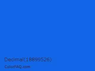 Decimal 18899526 Color is a normal blue color and the nearest color is Bright Navy Blue #1974d2. Hex code #1267e6 and RGB value is rgb(18,103,230). In RGB color space, this color is composed of 7% red, 40% green, 90% blue, In CMYK color space, this color is composed of 92% cyan, 55% magenta, 0% yellow , 10% black , In HSL color space, this color has a hue angle of 216° , 85% saturation and 49% lightness.