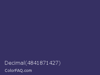 Decimal 4841871427 Color is a dark indigo color and the nearest color is Deep Koamaru #333366. Hex code #363063 and RGB value is rgb(54,48,99). In RGB color space, this color is composed of 21% red, 19% green, 39% blue, In CMYK color space, this color is composed of 45% cyan, 52% magenta, 0% yellow , 61% black , In HSL color space, this color has a hue angle of 247° , 35% saturation and 29% lightness.