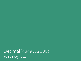 Decimal 4849152000 Color is a normal green color and the nearest color is Illuminating Emerald #319177. Hex code #379478 and RGB value is rgb(55,148,120). In RGB color space, this color is composed of 22% red, 58% green, 47% blue, In CMYK color space, this color is composed of 63% cyan, 0% magenta, 19% yellow , 42% black , In HSL color space, this color has a hue angle of 162° , 46% saturation and 40% lightness.