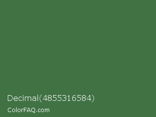 Decimal 4855316584 Color is a normal green color and the nearest color is Killarney #3a6a47. Hex code #407244 and RGB value is rgb(64,114,68). In RGB color space, this color is composed of 25% red, 45% green, 27% blue, In CMYK color space, this color is composed of 44% cyan, 0% magenta, 40% yellow , 55% black , In HSL color space, this color has a hue angle of 125° , 28% saturation and 35% lightness.