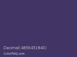 Decimal 4856451840 Color is a dark indigo color and the nearest color is Jacarta #3a2a6a. Hex code #423464 and RGB value is rgb(66,52,100). In RGB color space, this color is composed of 26% red, 20% green, 39% blue, In CMYK color space, this color is composed of 34% cyan, 48% magenta, 0% yellow , 61% black , In HSL color space, this color has a hue angle of 258° , 32% saturation and 30% lightness.