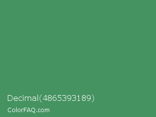 Decimal 4865393189 Color is a normal green color and the nearest color is Middle Green #4d8c57. Hex code #459361 and RGB value is rgb(69,147,97). In RGB color space, this color is composed of 27% red, 58% green, 38% blue, In CMYK color space, this color is composed of 53% cyan, 0% magenta, 34% yellow , 42% black , In HSL color space, this color has a hue angle of 142° , 36% saturation and 42% lightness.