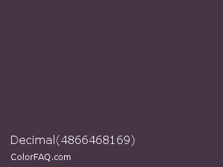 Decimal 4866468169 Color is a dark magenta color and the nearest color is Matterhorn #4e3b41. Hex code #473445 and RGB value is rgb(71,52,69). In RGB color space, this color is composed of 28% red, 20% green, 27% blue, In CMYK color space, this color is composed of 0% cyan, 27% magenta, 3% yellow , 72% black , In HSL color space, this color has a hue angle of 306° , 15% saturation and 24% lightness.