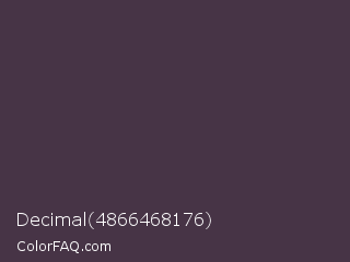 Decimal 4866468176 Color is a dark magenta color and the nearest color is Ship Gray #3e3a44. Hex code #473446 and RGB value is rgb(71,52,70). In RGB color space, this color is composed of 28% red, 20% green, 27% blue, In CMYK color space, this color is composed of 0% cyan, 27% magenta, 1% yellow , 72% black , In HSL color space, this color has a hue angle of 303° , 15% saturation and 24% lightness.