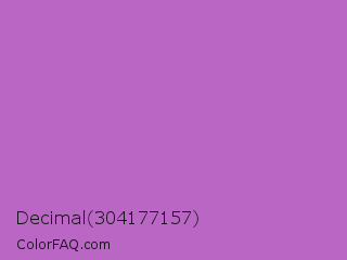 Decimal 304177157 Color is a normal magenta color and the nearest color is Rich Lilac #b666d2. Hex code #ba66c5 and RGB value is rgb(186,102,197). In RGB color space, this color is composed of 73% red, 40% green, 77% blue, In CMYK color space, this color is composed of 6% cyan, 48% magenta, 0% yellow , 23% black , In HSL color space, this color has a hue angle of 293° , 45% saturation and 59% lightness.