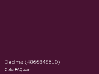 Decimal 4866848610 Color is a very dark magenta color and the nearest color is Loulou #460b41. Hex code #481232 and RGB value is rgb(72,18,50). In RGB color space, this color is composed of 28% red, 7% green, 20% blue, In CMYK color space, this color is composed of 0% cyan, 75% magenta, 31% yellow , 72% black , In HSL color space, this color has a hue angle of 324° , 60% saturation and 18% lightness.