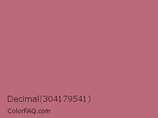 Decimal 304179541 Color is a normal red color and the nearest color is Rose Gold #b76e79. Hex code #ba6a7b and RGB value is rgb(186,106,123). In RGB color space, this color is composed of 73% red, 42% green, 48% blue, In CMYK color space, this color is composed of 0% cyan, 43% magenta, 34% yellow , 27% black , In HSL color space, this color has a hue angle of 347° , 37% saturation and 57% lightness.