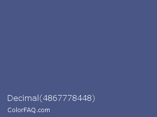 Decimal 4867778448 Color is a normal blue color and the nearest color is Purple Navy #4e5180. Hex code #495686 and RGB value is rgb(73,86,134). In RGB color space, this color is composed of 29% red, 34% green, 53% blue, In CMYK color space, this color is composed of 46% cyan, 36% magenta, 0% yellow , 47% black , In HSL color space, this color has a hue angle of 227° , 29% saturation and 41% lightness.