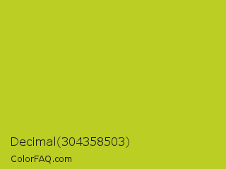 Decimal 304358503 Color is a normal yellow color and the nearest color is Key Lime Pie #bfc921. Hex code #bace23 and RGB value is rgb(186,206,35). In RGB color space, this color is composed of 73% red, 81% green, 14% blue, In CMYK color space, this color is composed of 10% cyan, 0% magenta, 83% yellow , 19% black , In HSL color space, this color has a hue angle of 67° , 71% saturation and 47% lightness.