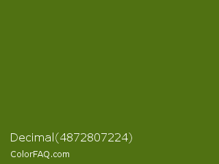 Decimal 4872807224 Color is a dark green color and the nearest color is Green Leaf #436a0d. Hex code #507112 and RGB value is rgb(80,113,18). In RGB color space, this color is composed of 31% red, 44% green, 7% blue, In CMYK color space, this color is composed of 29% cyan, 0% magenta, 84% yellow , 56% black , In HSL color space, this color has a hue angle of 81° , 73% saturation and 26% lightness.