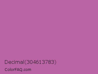 Decimal 304613783 Color is a normal magenta color and the nearest color is Pearly Purple #b768a2. Hex code #bb64a5 and RGB value is rgb(187,100,165). In RGB color space, this color is composed of 73% red, 39% green, 65% blue, In CMYK color space, this color is composed of 0% cyan, 47% magenta, 12% yellow , 27% black , In HSL color space, this color has a hue angle of 315° , 39% saturation and 56% lightness.