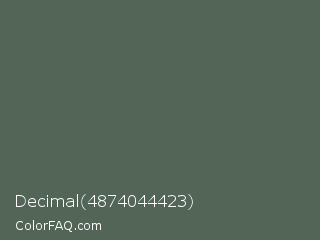 Decimal 4874044423 Color is a normal green color and the nearest color is Finlandia #556d56. Hex code #526557 and RGB value is rgb(82,101,87). In RGB color space, this color is composed of 32% red, 40% green, 34% blue, In CMYK color space, this color is composed of 19% cyan, 0% magenta, 14% yellow , 60% black , In HSL color space, this color has a hue angle of 136° , 10% saturation and 36% lightness.