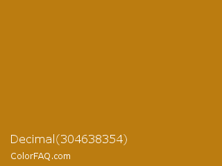 Decimal 304638354 Color is a normal orange color and the nearest color is Dark Goldenrod #b8860b. Hex code #bb7c10 and RGB value is rgb(187,124,16). In RGB color space, this color is composed of 73% red, 49% green, 6% blue, In CMYK color space, this color is composed of 0% cyan, 34% magenta, 91% yellow , 27% black , In HSL color space, this color has a hue angle of 38° , 84% saturation and 40% lightness.