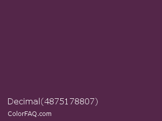 Decimal 4875178807 Color is a dark magenta color and the nearest color is Voodoo #533455. Hex code #542649 and RGB value is rgb(84,38,73). In RGB color space, this color is composed of 33% red, 15% green, 29% blue, In CMYK color space, this color is composed of 0% cyan, 55% magenta, 13% yellow , 67% black , In HSL color space, this color has a hue angle of 314° , 38% saturation and 24% lightness.