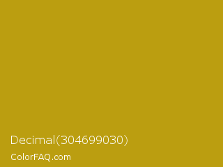 Decimal 304699030 Color is a normal yellow color and the nearest color is Sahara #b7a214. Hex code #bb9e10 and RGB value is rgb(187,158,16). In RGB color space, this color is composed of 73% red, 62% green, 6% blue, In CMYK color space, this color is composed of 0% cyan, 16% magenta, 91% yellow , 27% black , In HSL color space, this color has a hue angle of 50° , 84% saturation and 40% lightness.