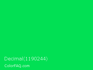 Decimal 1190244 Color is a normal green color and the nearest color is Malachite #0bda51. Hex code #01e054 and RGB value is rgb(1,224,84). In RGB color space, this color is composed of 0% red, 88% green, 33% blue, In CMYK color space, this color is composed of 100% cyan, 0% magenta, 63% yellow , 12% black , In HSL color space, this color has a hue angle of 142° , 99% saturation and 44% lightness.
