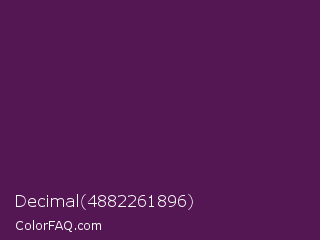 Decimal 4882261896 Color is a very dark magenta color and the nearest color is Clairvoyant #480656. Hex code #551654 and RGB value is rgb(85,22,84). In RGB color space, this color is composed of 33% red, 9% green, 33% blue, In CMYK color space, this color is composed of 0% cyan, 74% magenta, 1% yellow , 67% black , In HSL color space, this color has a hue angle of 301° , 59% saturation and 21% lightness.