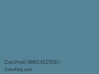 Decimal 4882452500 Color is a normal blue color and the nearest color is Smalt Blue #51808f. Hex code #558496 and RGB value is rgb(85,132,150). In RGB color space, this color is composed of 33% red, 52% green, 59% blue, In CMYK color space, this color is composed of 43% cyan, 12% magenta, 0% yellow , 41% black , In HSL color space, this color has a hue angle of 197° , 28% saturation and 46% lightness.