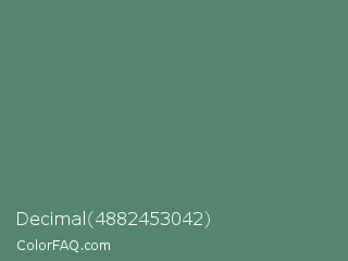 Decimal 4882453042 Color is a normal green color and the nearest color is Spring Leaves #578363. Hex code #558570 and RGB value is rgb(85,133,112). In RGB color space, this color is composed of 33% red, 52% green, 44% blue, In CMYK color space, this color is composed of 36% cyan, 0% magenta, 16% yellow , 48% black , In HSL color space, this color has a hue angle of 154° , 22% saturation and 43% lightness.