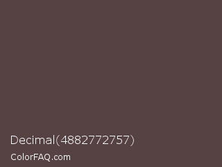 Decimal 4882772757 Color is a dark red color and the nearest color is Emperor #514649. Hex code #564143 and RGB value is rgb(86,65,67). In RGB color space, this color is composed of 34% red, 25% green, 26% blue, In CMYK color space, this color is composed of 0% cyan, 24% magenta, 22% yellow , 66% black , In HSL color space, this color has a hue angle of 354° , 14% saturation and 30% lightness.