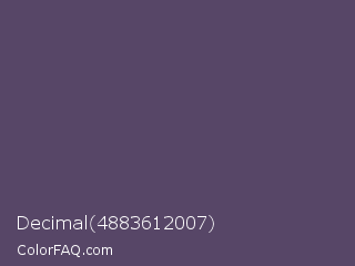Decimal 4883612007 Color is a normal purple color and the nearest color is Mulled Wine #4e4562. Hex code #574667 and RGB value is rgb(87,70,103). In RGB color space, this color is composed of 34% red, 27% green, 40% blue, In CMYK color space, this color is composed of 16% cyan, 32% magenta, 0% yellow , 60% black , In HSL color space, this color has a hue angle of 271° , 19% saturation and 34% lightness.