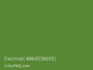 Decimal 4884538695 Color is a normal green color and the nearest color is Maximum Green #5e8c31. Hex code #588833 and RGB value is rgb(88,136,51). In RGB color space, this color is composed of 35% red, 53% green, 20% blue, In CMYK color space, this color is composed of 35% cyan, 0% magenta, 63% yellow , 47% black , In HSL color space, this color has a hue angle of 94° , 45% saturation and 37% lightness.