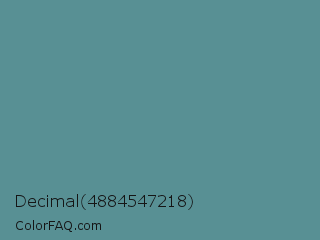 Decimal 4884547218 Color is a normal cyan color and the nearest color is Steel Teal #5f8a8b. Hex code #589094 and RGB value is rgb(88,144,148). In RGB color space, this color is composed of 35% red, 56% green, 58% blue, In CMYK color space, this color is composed of 41% cyan, 3% magenta, 0% yellow , 42% black , In HSL color space, this color has a hue angle of 184° , 25% saturation and 46% lightness.