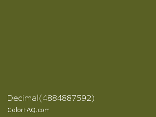 Decimal 4884887592 Color is a dark yellow color and the nearest color is Antique Bronze #665d1e. Hex code #596024 and RGB value is rgb(89,96,36). In RGB color space, this color is composed of 35% red, 38% green, 14% blue, In CMYK color space, this color is composed of 7% cyan, 0% magenta, 63% yellow , 62% black , In HSL color space, this color has a hue angle of 67° , 45% saturation and 26% lightness.