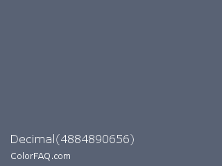 Decimal 4884890656 Color is a normal blue color and the nearest color is Comet #5c5d75. Hex code #596274 and RGB value is rgb(89,98,116). In RGB color space, this color is composed of 35% red, 38% green, 45% blue, In CMYK color space, this color is composed of 23% cyan, 16% magenta, 0% yellow , 55% black , In HSL color space, this color has a hue angle of 220° , 13% saturation and 40% lightness.