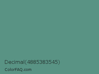 Decimal 4885383545 Color is a normal green color and the nearest color is Wintergreen Dream #56887d. Hex code #599383 and RGB value is rgb(89,147,131). In RGB color space, this color is composed of 35% red, 58% green, 51% blue, In CMYK color space, this color is composed of 39% cyan, 0% magenta, 11% yellow , 42% black , In HSL color space, this color has a hue angle of 163° , 25% saturation and 46% lightness.